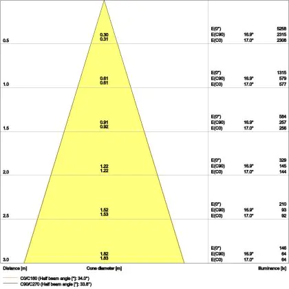 De gradenbundel geeft informatie over hoe breed het licht wordt uitgestraald. Dit zit tussen de 0 en 360 graden (D). Hoe kleiner de hoek, hoe specifieker de lichtbundel is. Over het algemeen is een smalle gradenbundel perfect voor sfeer- of accentverlichting, terwijl een brede gradenbundel ideaal is om grote oppervlaktes te verlichten.