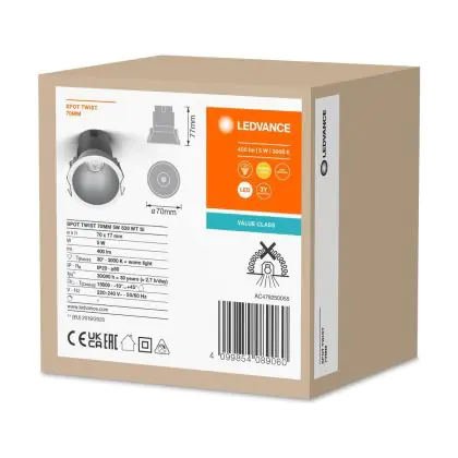 | Fabrikantnaam | LED SPOT RECESS TWIST PRO 70mm 5W 3000K White Silver | |