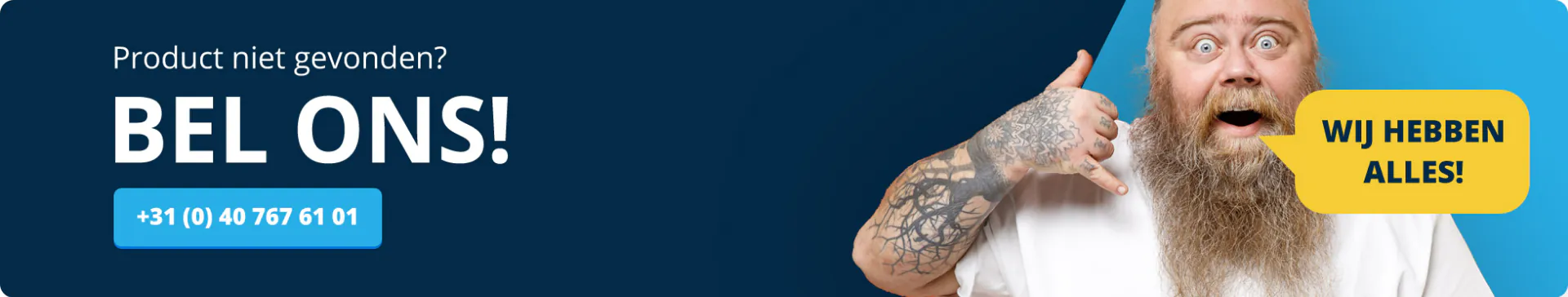 Geen probleem! Onze accountmanagers zijn bereikbaar van maandag tot vrijdag tussen 08:00u en 17:00u op het volgende telefoonnummer : 040 767 61 01.